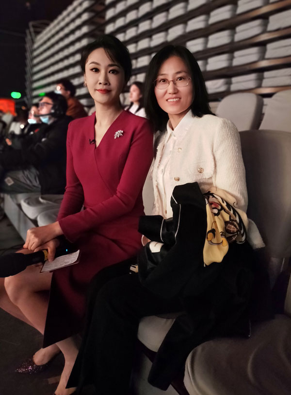 圖為質(zhì)檢協(xié)會副會長王群和中央電視臺主持人張琳在3·15晚會現(xiàn)場