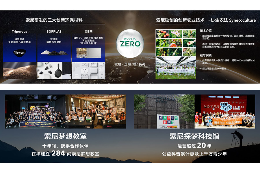在發(fā)展各項業(yè)務的同時,索尼矢志不渝履行對地球的“責任”,并通過技術和業(yè)務為地球做“貢獻”。在“走向零負荷”的環(huán)境目標指導下,在中國,索尼已從2020-2022財年連續(xù)實現(xiàn)100%可再生能源用電,并將多樣創(chuàng)新的環(huán)保技術成果引入中國:包括將多樣植物高密度混種以回歸自然生態(tài)的“協(xié)生農(nóng)法”,索尼獨自開發(fā)的三大創(chuàng)新環(huán)保材料SORPLARSTM,TriporousTM,OBM等等。