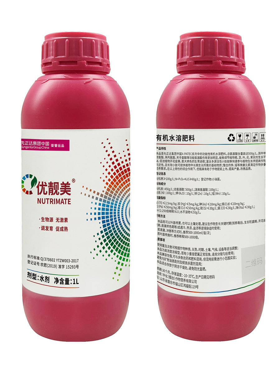 優(yōu)靚美是先正達(dá)集團(tuán)中國(guó)X-PATec系列中的功能性有機(jī)水溶肥料??偘被岷扛哌_(dá)500g/L,能夠調(diào)節(jié)植物根、莖、葉、花、果實(shí)的生長(zhǎng)平衡,促進(jìn)植物開花座果、膨大轉(zhuǎn)色的生育進(jìn)程;提高作物抗逆性,滿足作物多重營(yíng)養(yǎng)需求。有助于作物提前上市,提高產(chǎn)量,改善品質(zhì)。