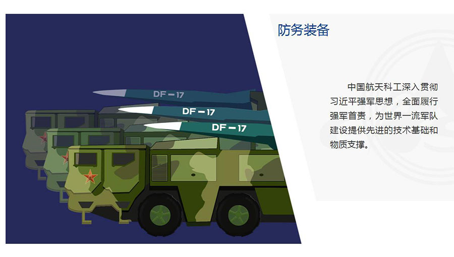 中國航天科工積極適應(yīng)世界軍事發(fā)展趨勢和我軍軍事斗爭準備急需,深入貫徹習近平強軍思想,貫徹新時代軍事戰(zhàn)略方針,聚焦如期實現(xiàn)建軍一百年奮斗目標,著眼復雜戰(zhàn)場環(huán)境下的作戰(zhàn)需求,加速戰(zhàn)略性、前沿性、顛覆性技術(shù)創(chuàng)新,加速武器裝備升級換代和智能化武器裝備發(fā)展,推動科研生產(chǎn)能力不斷增強、新型導彈武器不斷涌現(xiàn)、裝備科研生產(chǎn)體系更加完整,為人民軍隊捍衛(wèi)國家主權(quán)、安全、發(fā)展利益提供先進的技術(shù)基礎(chǔ)、物質(zhì)保障和強有力的導彈武器裝備戰(zhàn)略支撐。