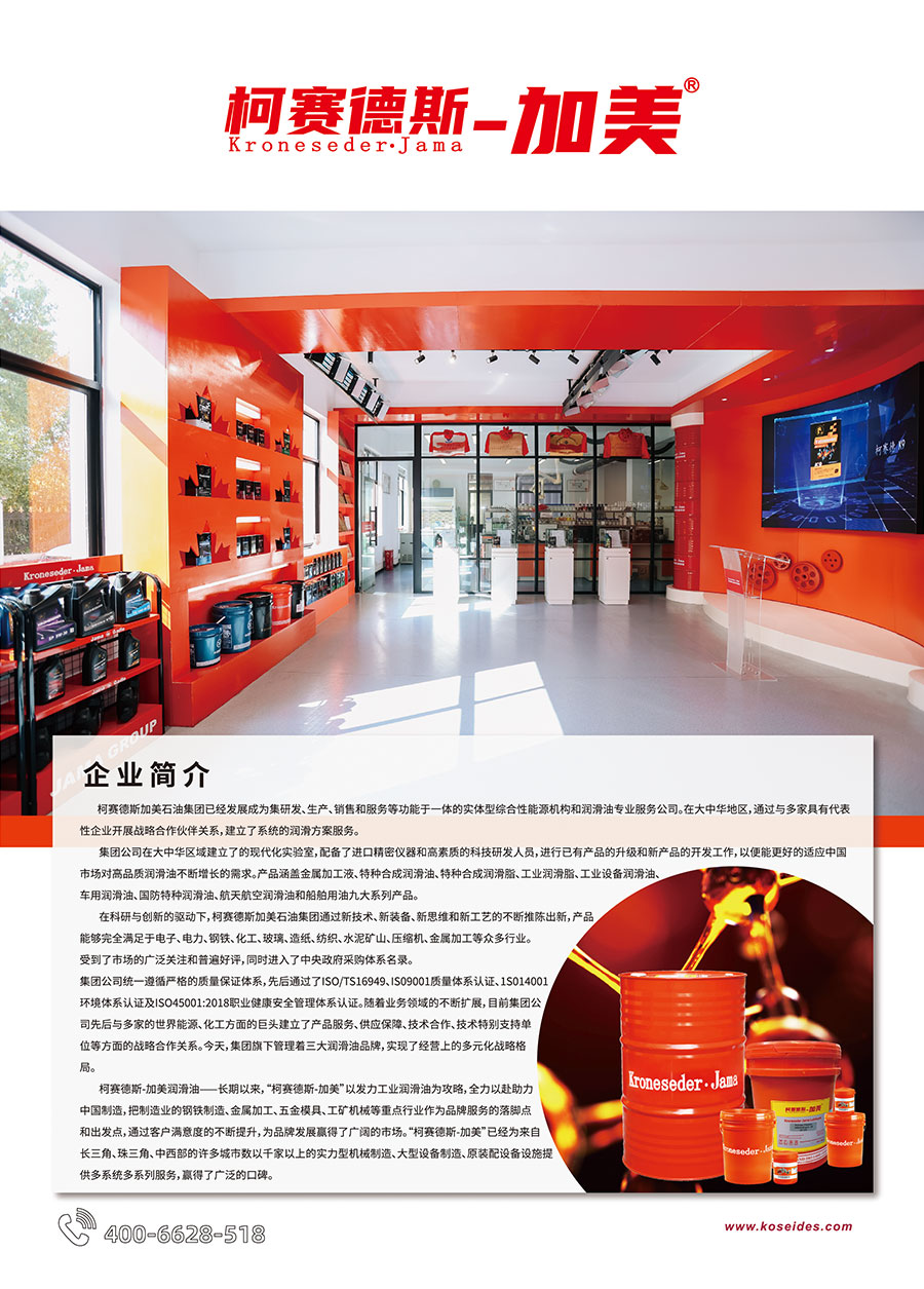 主要產(chǎn)品:柯賽德斯-加美、中訊高科、柯賽德、金屬加工液、特種合成潤(rùn)滑油、特種合成潤(rùn)滑脂、工業(yè)潤(rùn)滑脂、工業(yè)設(shè)備潤(rùn)滑油、車用潤(rùn)滑油、國(guó)防特種潤(rùn)滑油、航天航空潤(rùn)滑油、船舶用油九大系列產(chǎn)品