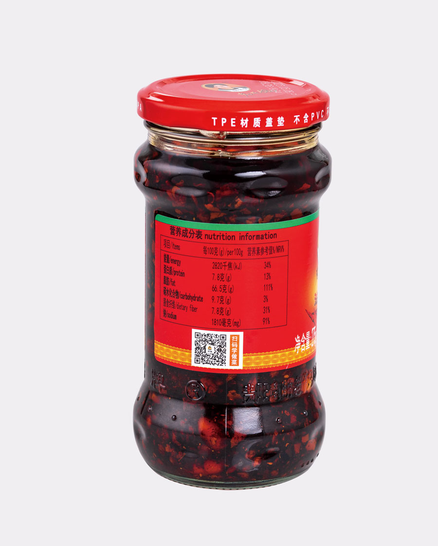 主要產(chǎn)品:老干媽牌油辣椒系列(油辣椒、風(fēng)味豆豉、香菇、精制牛肉末豆豉、辣三丁、香辣脆、干煸肉絲、風(fēng)味雞、肉絲豆豉)、油辣子大塊牛肉醬、火鍋底料(糟辣椒/植物油)、香辣醬、下飯菜、拌飯醬、風(fēng)味水豆豉、紅油腐乳、風(fēng)味腐乳、香辣菜、糟辣剁椒系列(姜蒜/中辣/微辣)、番茄辣醬