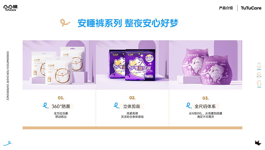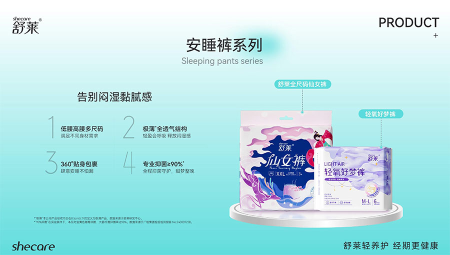 主要產(chǎn)品:舒萊、凸凸棉衛(wèi)生巾、衛(wèi)生護(hù)墊、安睡褲(女性衛(wèi)生褲)