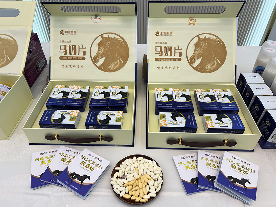 照富公司其主打產(chǎn)品“照富”牌酸馬奶,作為北方民族“藥食同源”的高端養(yǎng)生飲品,被贊譽(yù)為“蒙古八珍”之一,是極具發(fā)展?jié)摿Φ墓δ苄匀橹破?。作為國?nèi)首家獲取SC生產(chǎn)許可證并實(shí)現(xiàn)馬奶標(biāo)準(zhǔn)化生產(chǎn)的企業(yè),“照富”牌灌裝馬奶產(chǎn)品在技術(shù)層面具備先進(jìn)性與創(chuàng)新性,為我區(qū)首創(chuàng),達(dá)到國內(nèi)先進(jìn)水準(zhǔn)。目前,擁有注冊商標(biāo)17個(gè)、實(shí)用新型專利8項(xiàng)、酸馬奶發(fā)明專利申請2項(xiàng),同時(shí)制定了7項(xiàng)馬奶產(chǎn)品企業(yè)標(biāo)準(zhǔn),已成功研制出策格(酸馬奶)、馬奶酒、馬奶粉、馬奶片、馬奶風(fēng)味飲品、馬奶冰淇淋、馬奶凝酪、馬油香皂、馬油口紅等9大類產(chǎn)品。