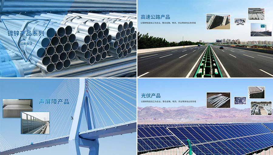 集團下屬有各類焊管、螺旋管制造、熱電鍍鋅、噴塑浸塑、納米加工、公路安全設施材料制造、鐵路聲屏障制造、大型鑄鍛件制造、鋼板樁制造、電力設施、新能源等十多個企業(yè)和二十多個分公司。專業(yè)生產(chǎn)、銷售4分至8寸高頻焊接鋼管、219-2540規(guī)格的螺旋鋼管、石油天然氣管、厚壁管、高速公路安全設施產(chǎn)品、鐵路聲屏障產(chǎn)品,電力鐵塔、光伏產(chǎn)品,各種規(guī)格的鋼管、扁鐵、圓鋼、角鋼及鐵制大小件的生產(chǎn)和熱鍍鋅電鍍鋅加工、靜電噴塑和納米加工。是以鋼鐵制作加工為主業(yè),集物流服務、現(xiàn)代旅游農(nóng)業(yè)、新能源配套、金融業(yè)等行業(yè)為一體的多功能跨領域的大型集團。產(chǎn)品成功銷往美洲、歐洲、中東、東南亞等國家和地區(qū),與美國、印度、荷蘭、澳大利亞、阿聯(lián)酋、韓國等國客商建立了業(yè)務合作關系。