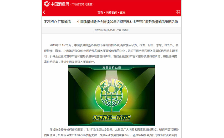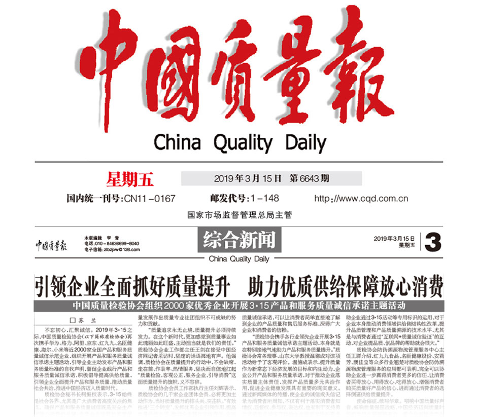 (備注:本新聞刊發(fā)于《中國質(zhì)量報》2019年3月15日刊第03版)
